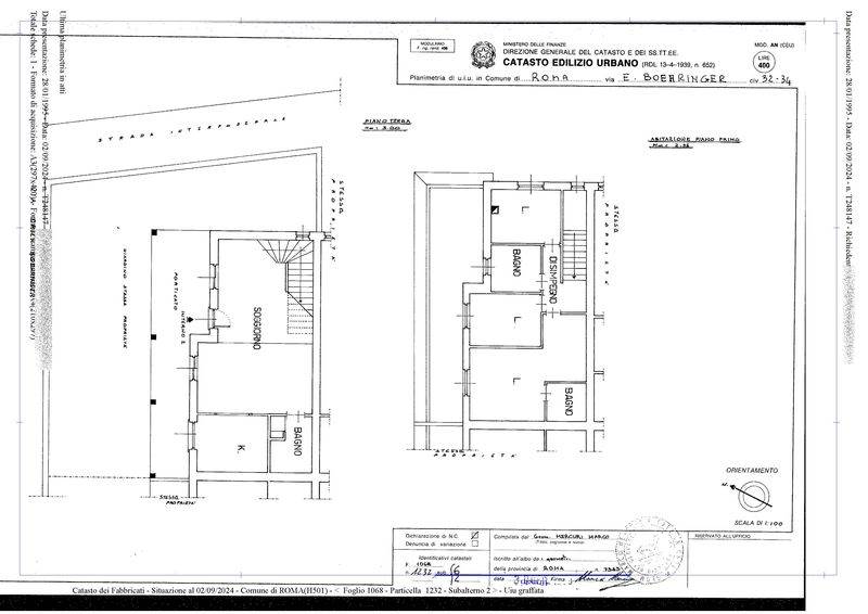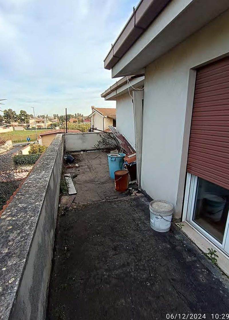 Villetta di mq 154 a Roma zona Dragona Via Erich Boehringer, 32 piano t-1: porzione di villetta quadrifamiliare composta da ampio giardino esterno con porticato, internamente al piano terra da soggiorno, cucina e bagno e al piano primo da 3 camere da letto e un bagno, oltre a balcone, per complessivi mq. 154,00 circa lordi, oltre mq. 176,20 circa lordi per aree scoperte. Il tutto in normale stato di manutenzione come riportato sulla CTU visionabile presso lo Studio.