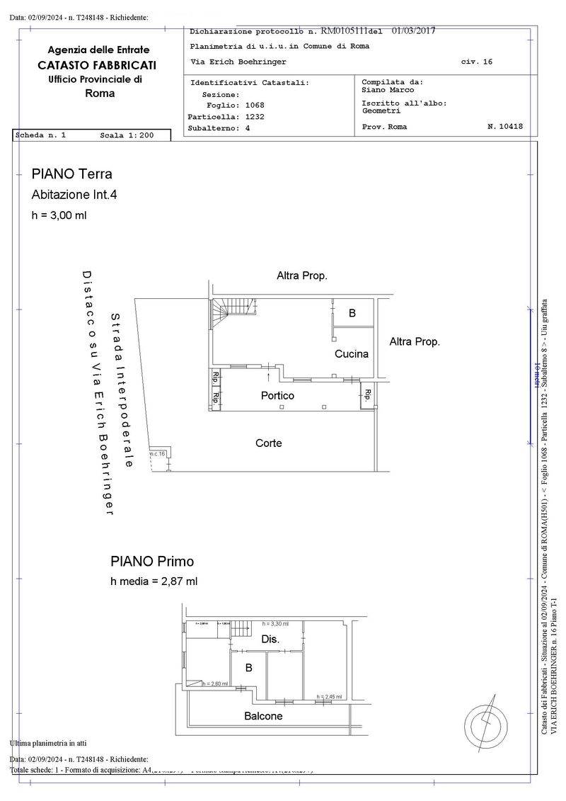 Villetta quadrifamiliare di mq 147 circa e 175 di giardino, a Roma Via Erich Boehringer 16 zona Dragona, composto da ampio giardino esterno con porticato e ripostigli, internamente al piano terra da soggiorno, cucina e bagno e al piano primo da 3 camere da letto e un bagno, oltre a balcone. Il tutto in normale stato di manutenzione come riportato sulla CTU visionabile presso lo Studio.