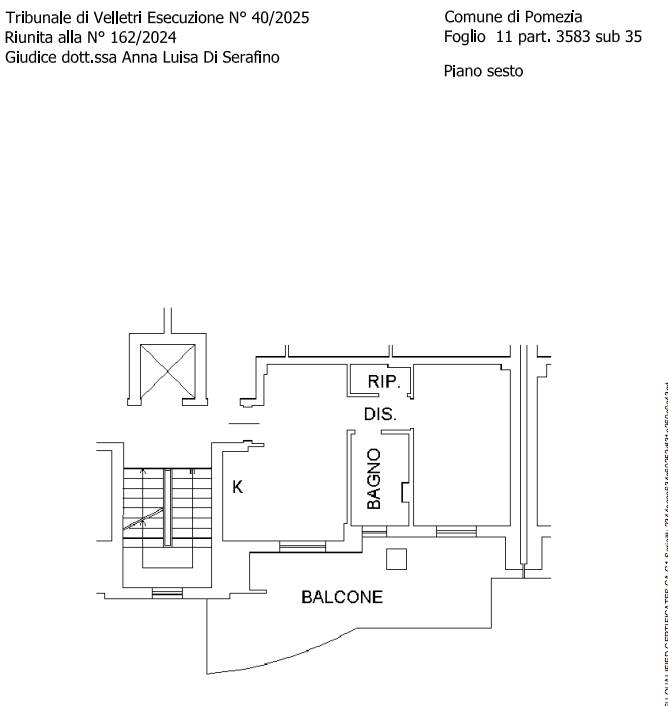 Appartamento di mq 68 a Pomezia (RM), quartiere Primavera, in Via Pino Romualdi n. 4 posto al Piano Sesto con annesso box auto di mq 30 al Piano Secondo Seminterrato. L'immobile è composto da soggiorno con angolo cottura, un disimpegno, un bagno, ripostiglio e una camera da letto, oltre balcone a livello. Internamente infissi in legno e pavimenti in ceramica.