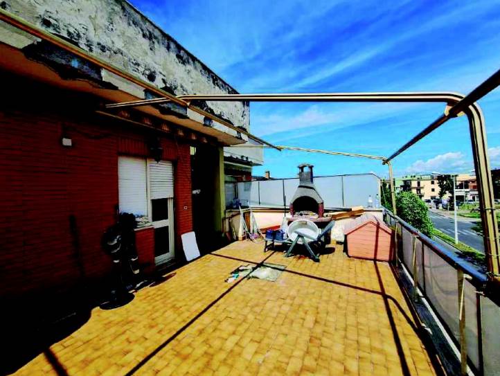 Appartamento di mq 71 a Ladispoli (RM) in Via Roma, 69 posto al Piano Secondo, in prossimità del mare a circa 250 mt. L'immobile è composto da soggiorno-pranzo con angolo cottura e grande terrazza di mq 33, camera matrimoniale e cameretta, bagno con balconcino. Dalla terrazza esterna, attraverso una scala a chiocciola in ferro, si raggiunge il lastrico solare di mq 79 (non riportato catastalmente). Internamente infissi in PVC e pavimenti in grès porcellanato. Il tutto in mediocre stato di conservazione come riportato sulla CTU visionabile presso lo Studio.