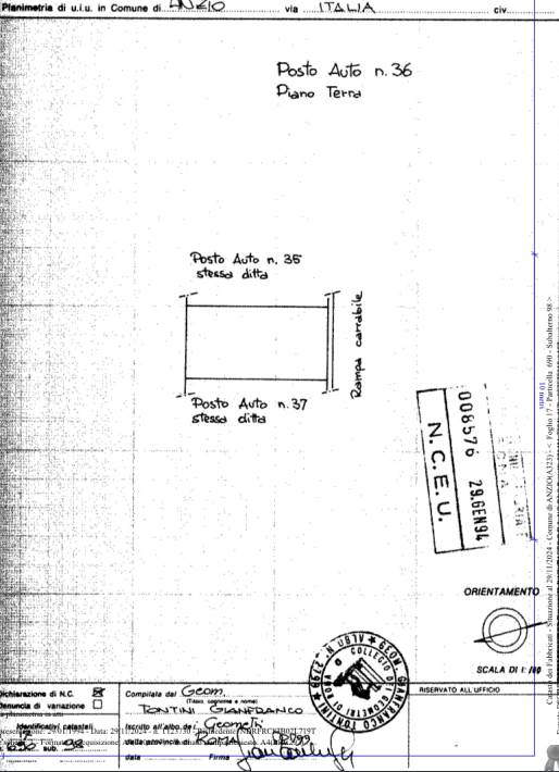 Appartamento di mq 64 ad Anzio in Via C. Italia, 9 posto al Piano Terra con annesso Giardino di mq 127 e veranda coperta di mq 30, oltre posto auto esterno per un totale complessivo di mq 128. L'immobile è composto da pranzo/soggiorno, angolo cottura, due camere da letto e bagno. Internamente infissi in alluminio vetro singolo e pavimenti in grès porcellanato. Il tutto in buono stato di manutenzione come riportato sulla CTU visionabile presso lo Studio.