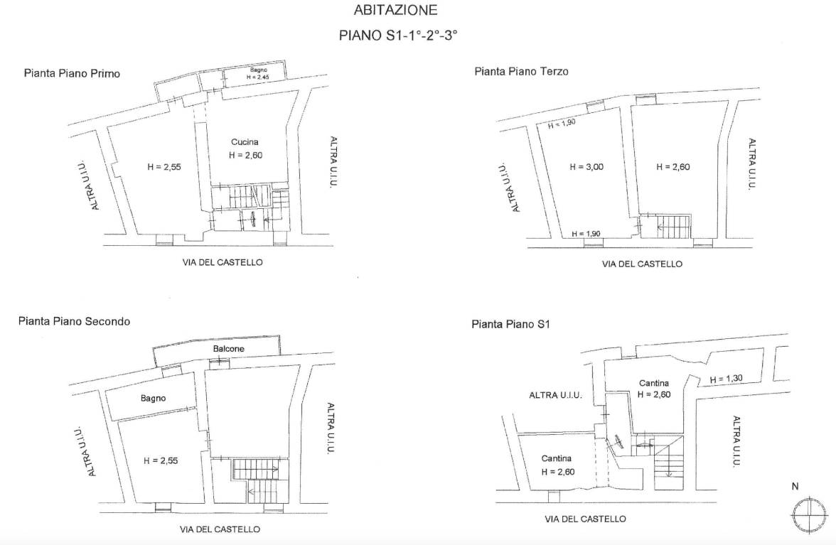 Appartamento di mq 156 sito nel centro storico di Carpineto Romano (RM) in Via Castello n. 42 disposto su tre piani con annessa Cantina di mq 42 al Piano Scantinato. L'immobile è cosi composto: Al Piano Primo da soggiorno/pranzo, una cucina, tre piccoli disimpegni, un bagno e un ripostiglio; Al Piano Secondo da due camere da letto, un bagno, un ripostiglio e un balcone; Al Piano Terzo da due vani e un disimpegno. Internamente pavimenti in ceramica e marmo, infissi in alluminio e legno con vetro singolo. Il tutto in discreto stato conservativo come riportato sulla CTU visionabile presso lo Studio.